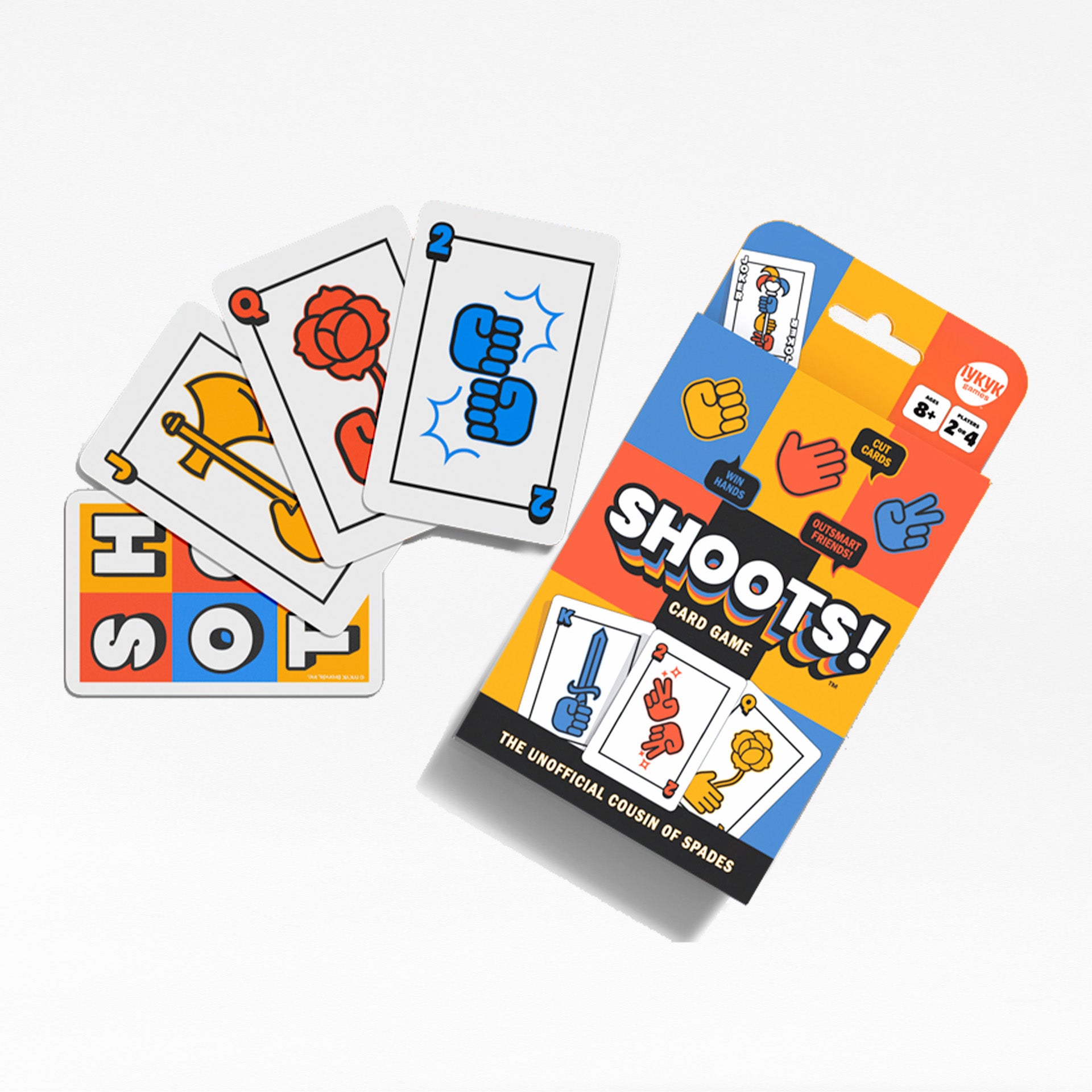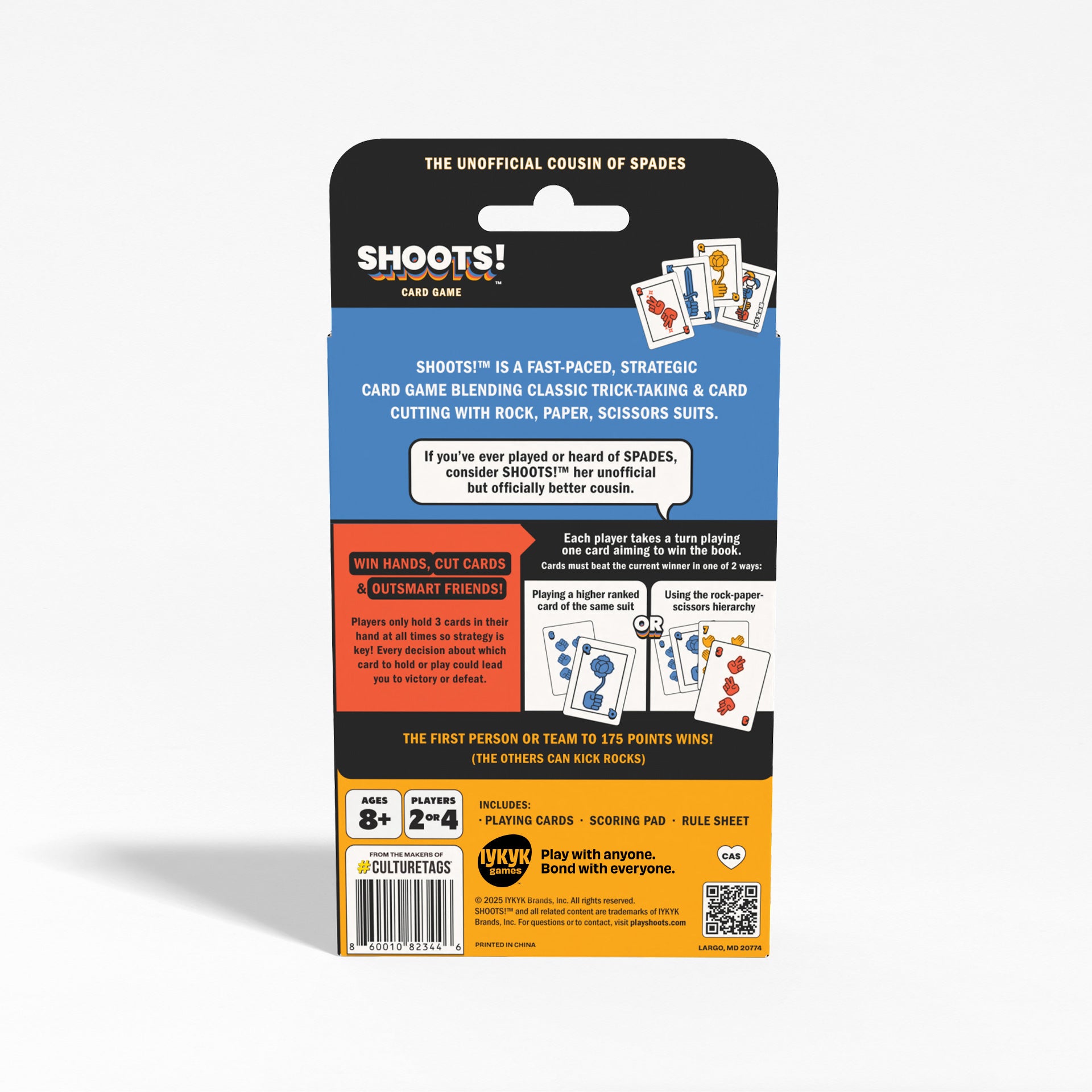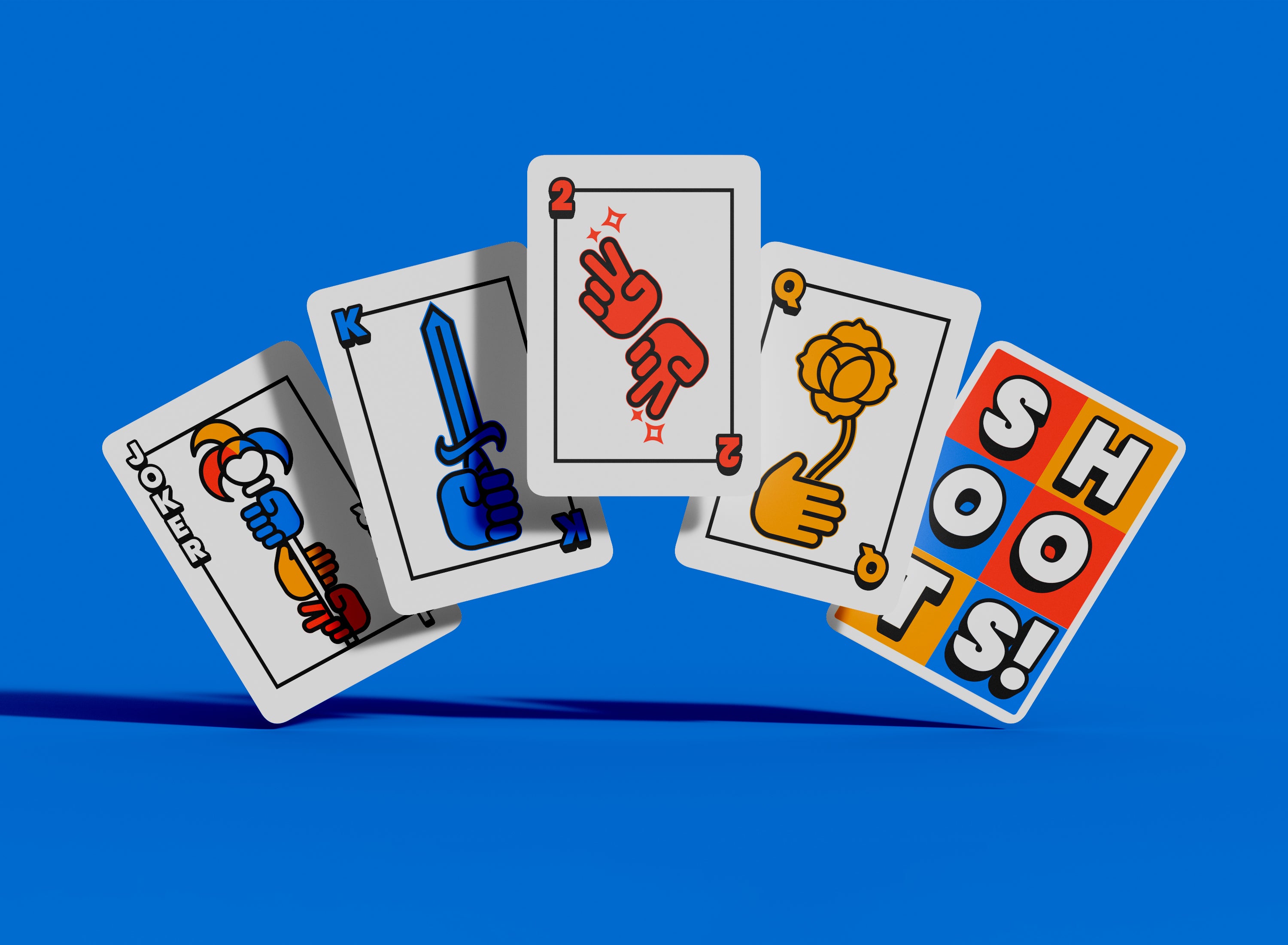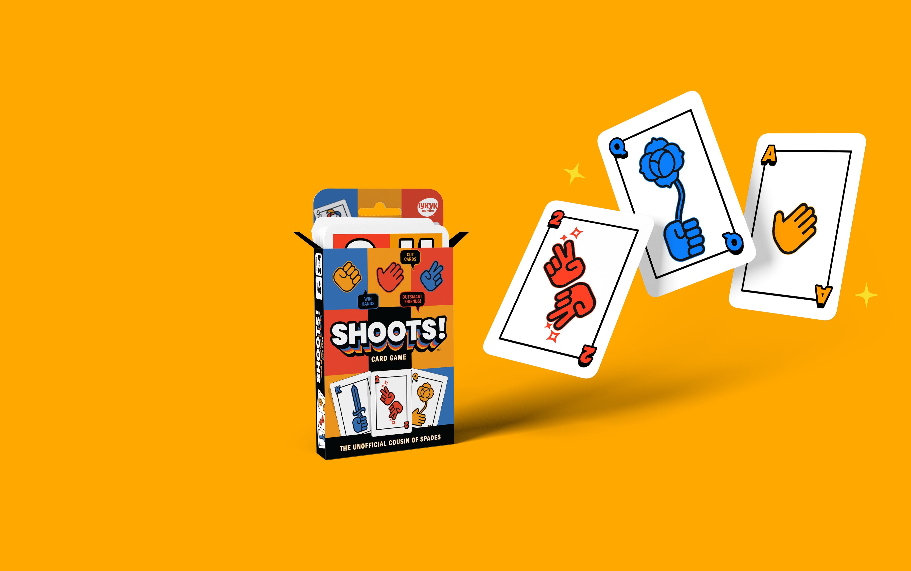 Oh and forget about hearts, diamonds, clubs, and spades. The suits in SHOOTS!™ are Rock, Paper, and Scissors — but don’t get it twisted, you’re not ready for how strategic, fun, and weirdly nostalgic this game gets!