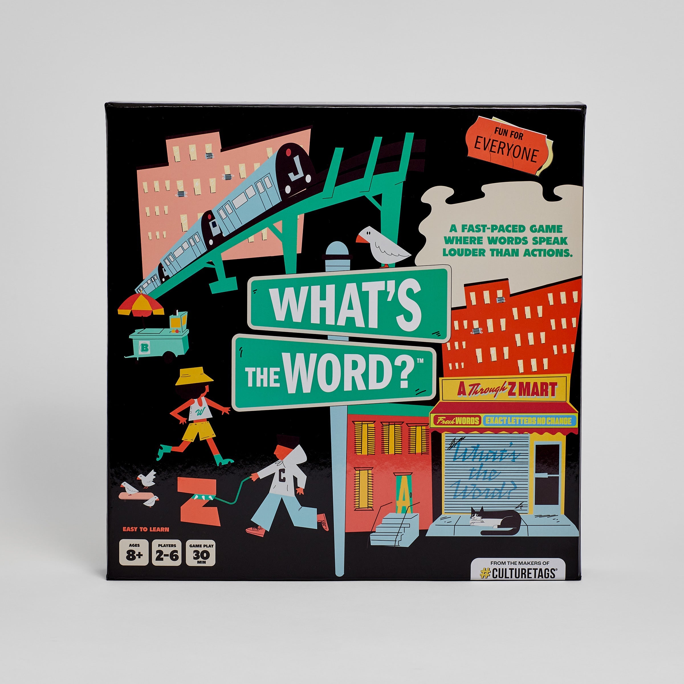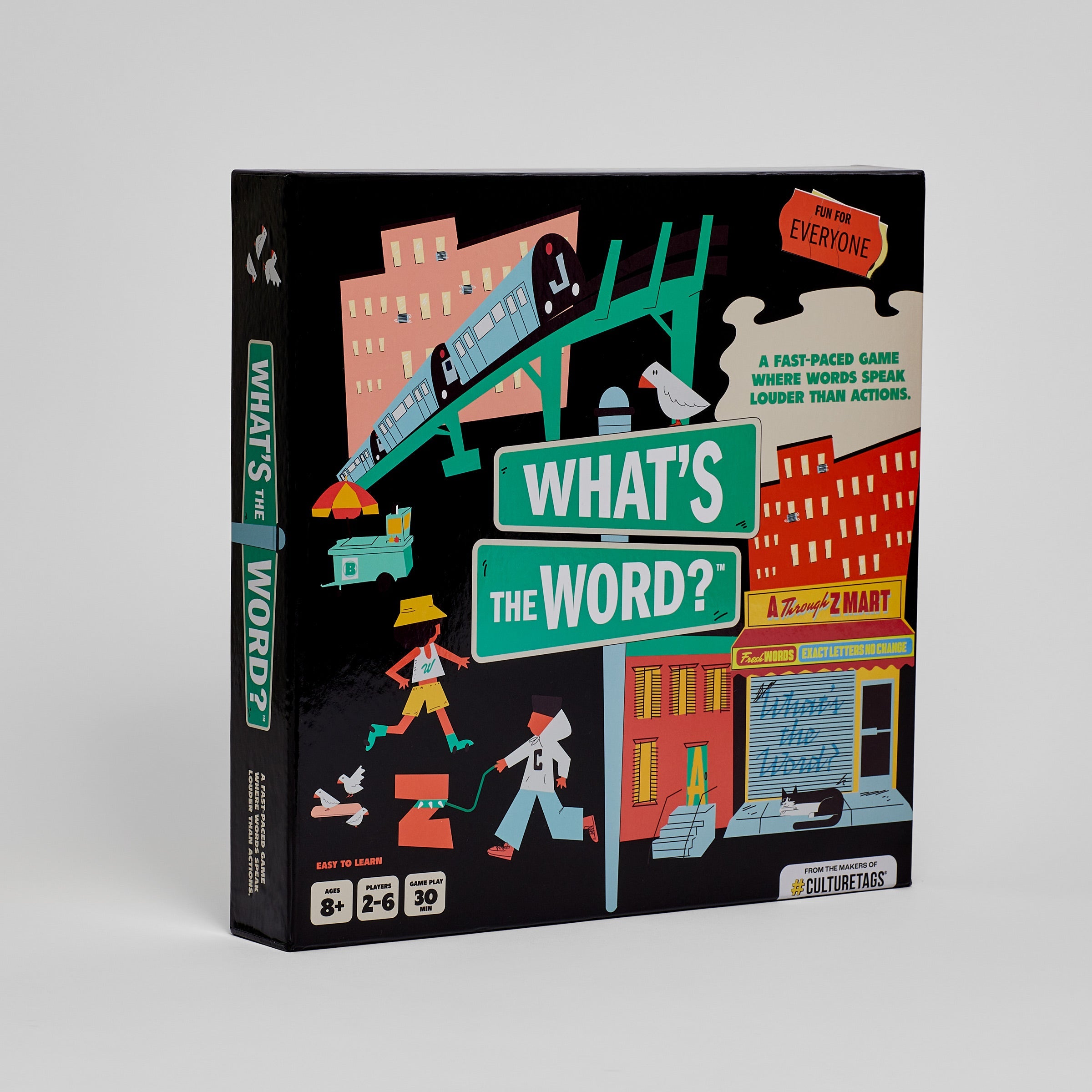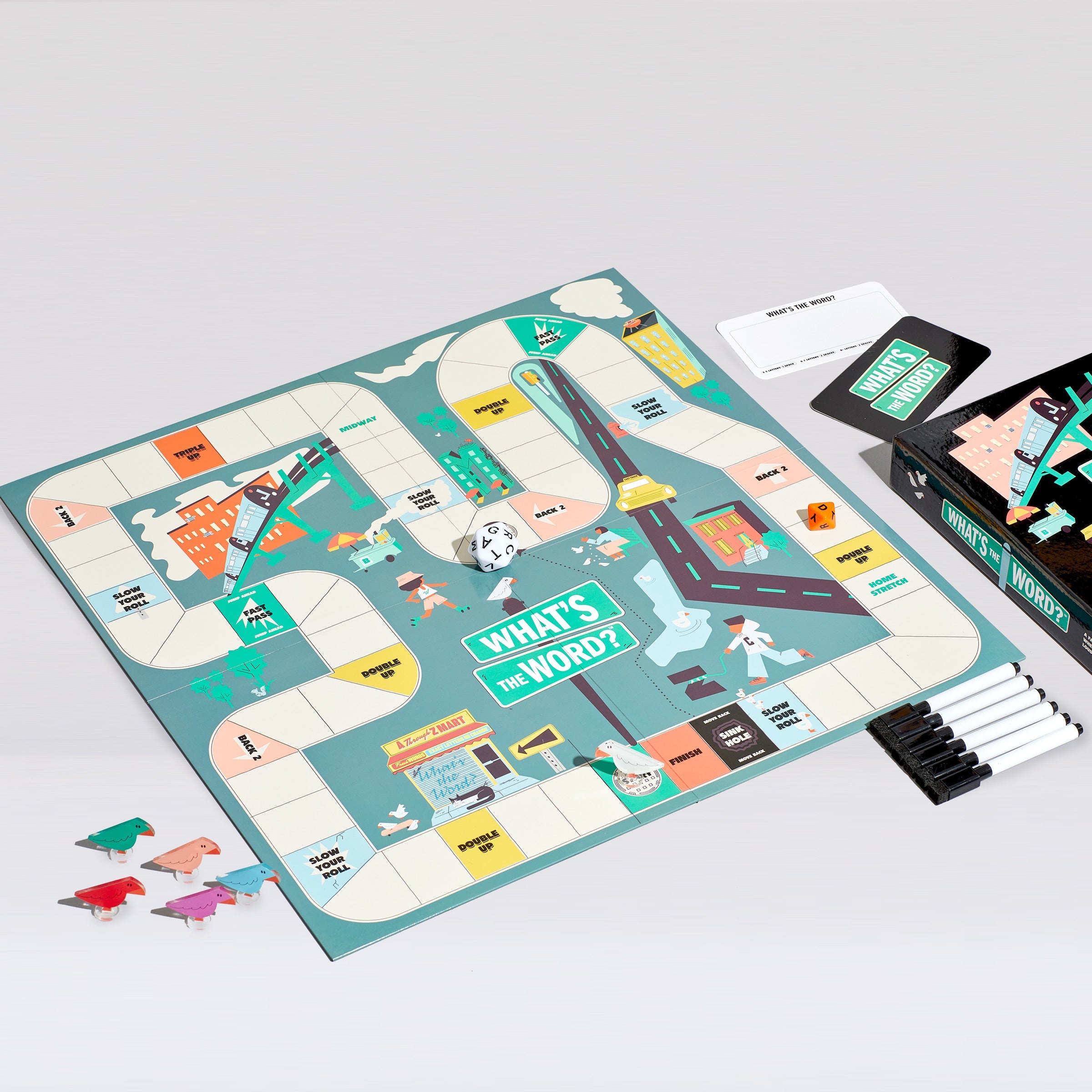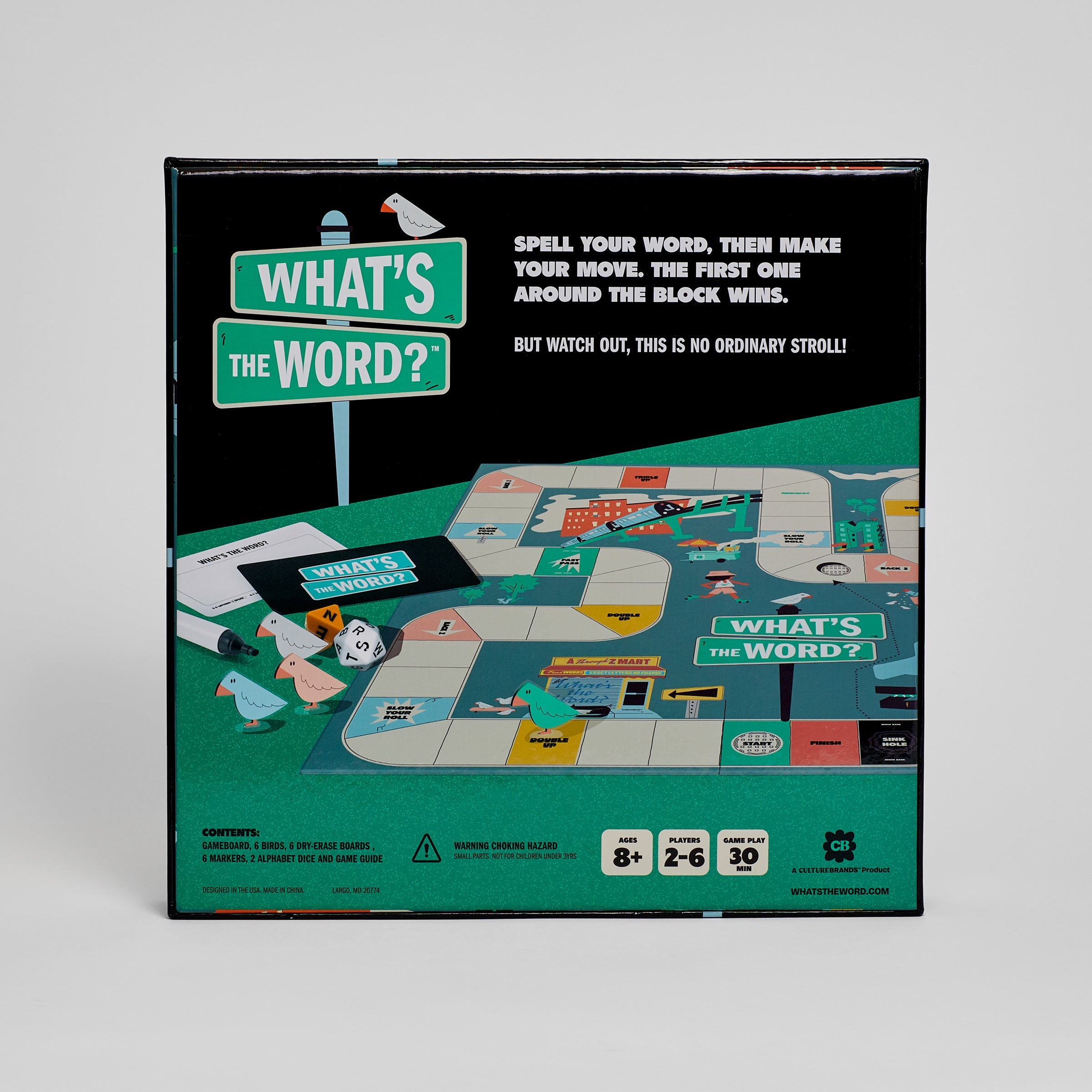 The brainpower of Scrabble meets the dice-rolling fun of Trouble. What’s The Word? is a race around the board where everyone stays on their toes and the pressure is on to think FAST and spell even FASTER. You’ll learn quickly that bigger words aren’t always better. Each round throws in a curveball to keep things intriguing, so come prepared. Challenge your friends and family to see who can finish the block first. But watch out for the Sink Hole! This game is great for game nights, casual get-togethers, or anyone who loves a good brain teaser.